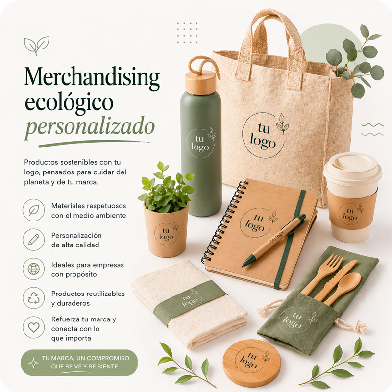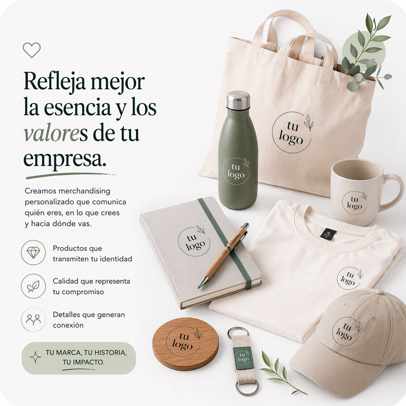 Disponemos de una amplia gama de productos promocionales personalizables, como camisetas, gorras, mochilas, bolsas, tazas, bolígrafos o llaveros, entre muchos otros. Aplicamos diferentes técnicas de personalización como impresión, bordado o grabado para garantizar un acabado profesional alineado con tu identidad corporativa. También contamos con opciones de merchandising ecológico para empresas comprometidas con la sostenibilidad.