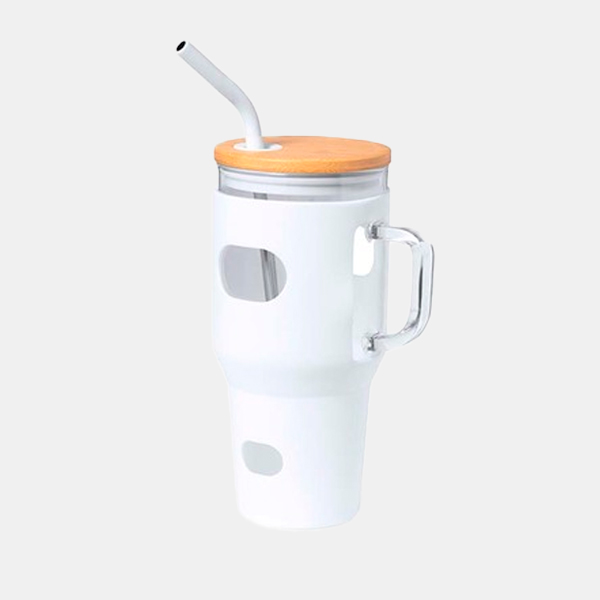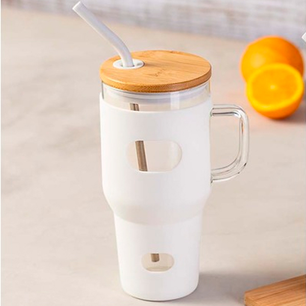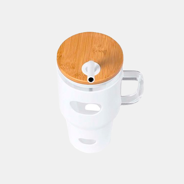 | Material | Cuerpo de cristal con funda protectora de silicona y tapa de bambú |