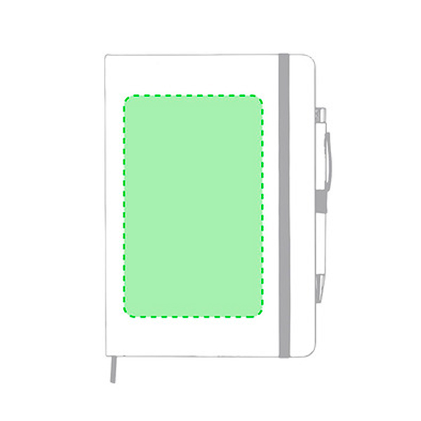 | Marcaje portada | Área 1: Centrado en la portada (100 x 160 mm) - Serigrafía E (máx. 4 colores) |