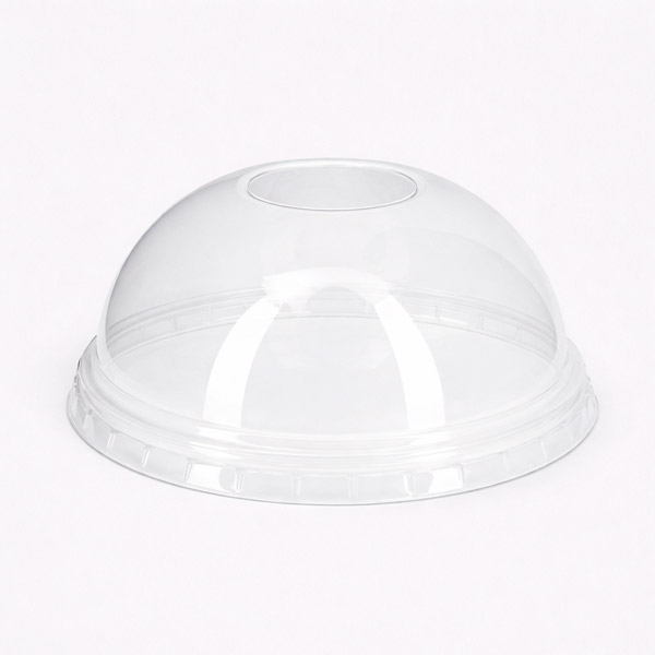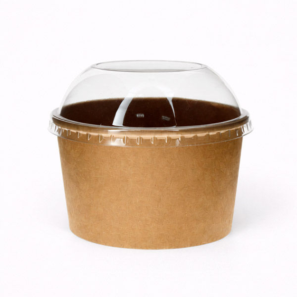 Tapas de PET tipo cúpula para tarrinas de helado, ideales para servicio take away en heladerías gracias a su acabado transparente que permite ver el producto. Ofrecen un cierre seguro y hermético, perfecto para el transporte. Compatibles con tarrinas de 9,4Ø de diámetro.